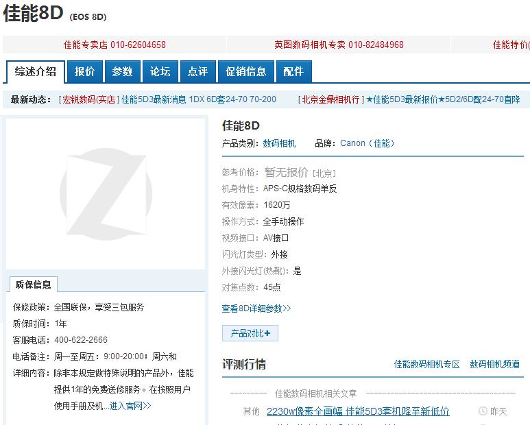 The rumored Canon EOS 8D now shows up at Chinese online stores Zol and PCOnline. This is not first time Canon 8D appears, the Russian store also leaked Canon 8D page.