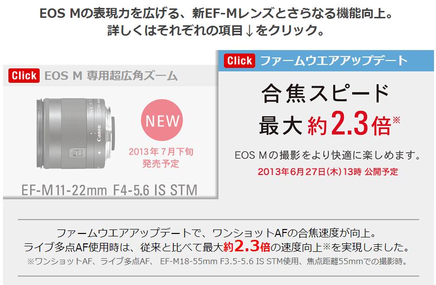 Canon Japan announced the new Canon EOS M firmware update will be available for download on June 27, 2013.