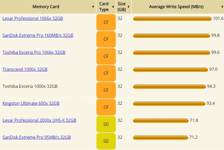 Memory Card Speed Comparison on Canon EOS 5Ds