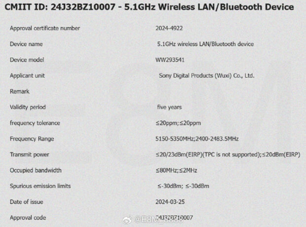 Sony has recently registered a new camera code, “WW293541”, in China. The registration reveals that the camera will feature 5.1GHz/2.4GHz wireless network and Bluetooth support, suggesting advanced connectivity options. Rumors are circulating that this new camera could be the highly anticipated Sony ZV-E10 II or the FX3 II.