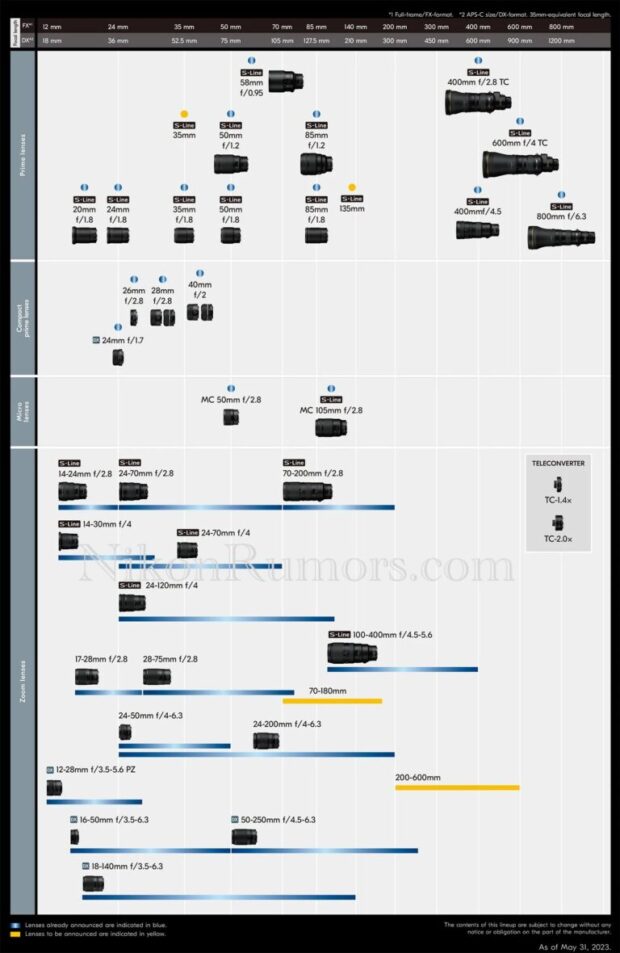 The remaining unannounced lenses on the roadmap are the 35mm, 135mm, 70-180mm, and 200-600mm, all of which will be announced later this year 2023. Also, according to a previous article, Nikon Rumors believes that Nikkor 35mm F-number will be f/1.2 and Nikkor 135mm will be f/1.8.