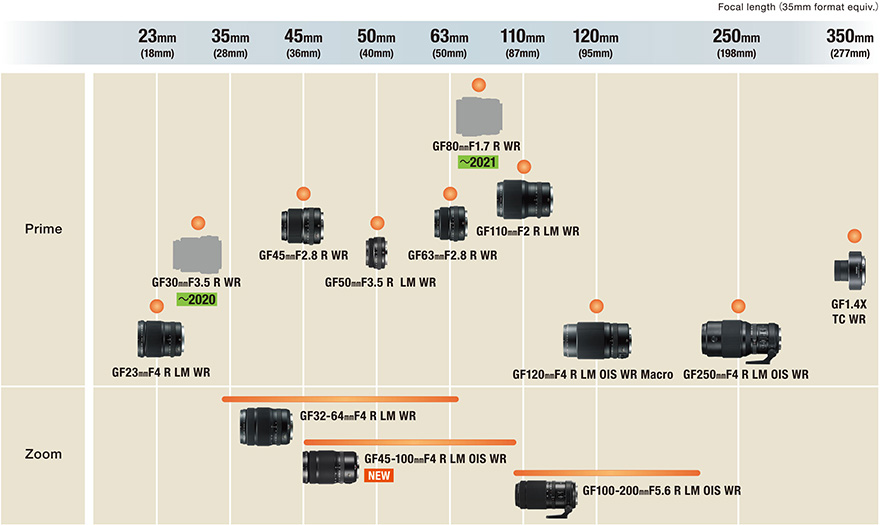 Fujifilm also announced the new GF lens roadmap for 2020 to 2021. Add two new GF lenses below: