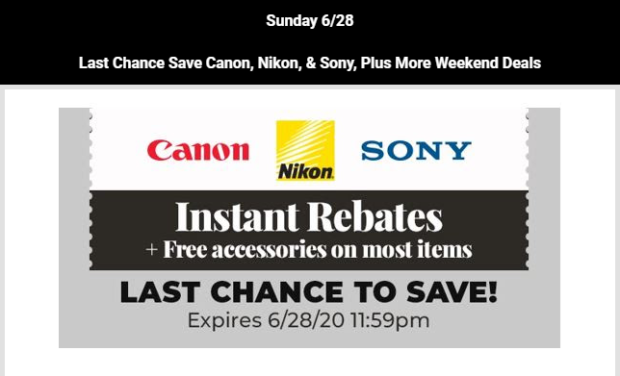 This is the Last Chance to Save Canon, Nikon, & Sony, Plus Weekend Deals. All the deals will expire on June 28, 2020. See the details below: