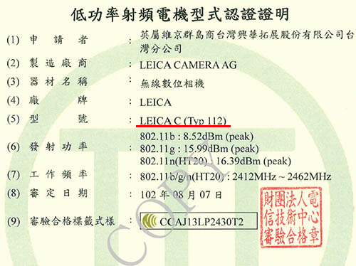 The new released Panasonic DMC-GX7 and upcoming Sony NEX-5T also registered at Taiwan NCC. So Leica C is probably coming soon.