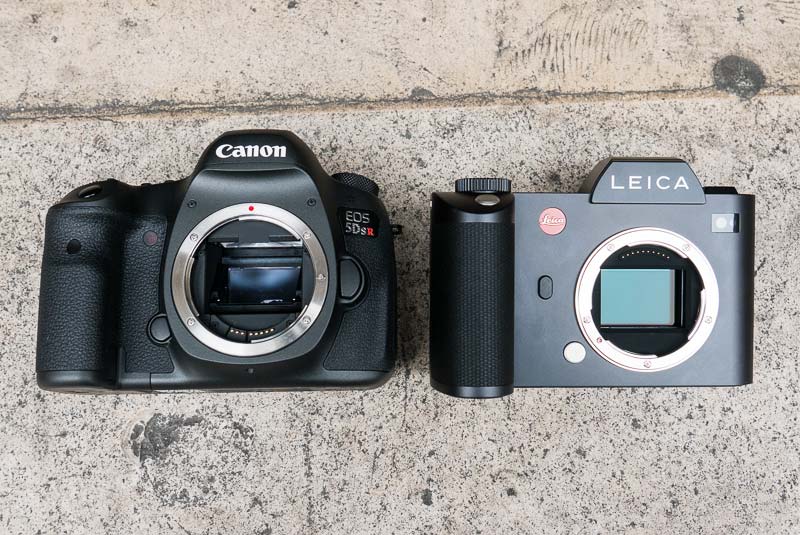 PhotographyBlog has posted several images of size comparison with new announced Leica SL Typ 601 (B&H Photo Video, Adorama) and Sony a7RII (Amazon, B&H Photo Video, Adorama) and Canon EOS 5Ds R.