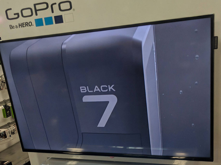 The camera appears to come in three colors: white, silver, and black. The display also shows off some of the usual features that we’ve seen with prior models, like image stabilization and that it’s waterproof up to a depth of 33 feet. A couple of the models appear to come without a front screen, echoing what we saw with the Hero 4 line, where the silver model came without the screen, while the black version did.