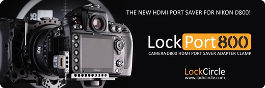 Accessory maker LockCircle has announced it will offer its ‘LockPort’ durable HDMI socket bracket for the Nikon D800. The LockPort800 combines a mounting plate that secures to the base of the camera with a miniHDMI-to-standard HDMI adapter that bolts onto it. This provides an easy-access full-size HDMI connector while also protecting your camera’s miniHDMI socket from damage. The mounting plate is designed so that the camera can still be used with other mounts, tripod plates and accessories, in tandem with the LockPort. The LockPort800 will be available from June 2012 at a cost of $199/€99.