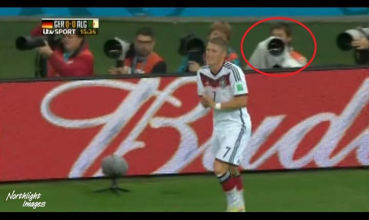 Specs of 7D Mark II is still not confirmed, there is a hidden Canon DSLR camera at World Cup 2014, see the image below: