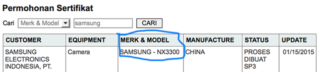 Similar to Sony’s new full frame mirrorless, Indonesian Communication Agency also posted a new Samsung camera- Samsung NX3300.