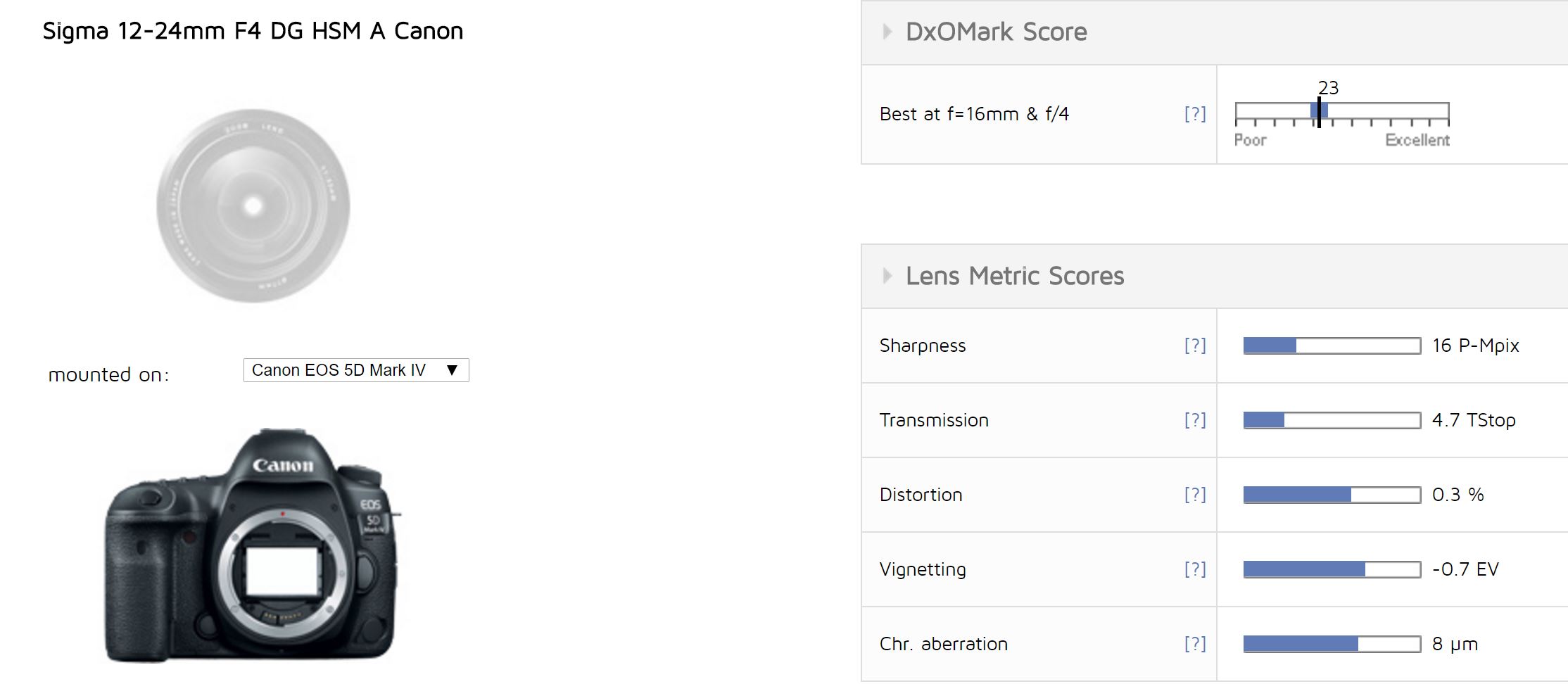 DxOMark has tested the new Sigma 12-24mm f/4 DG HSM Art lens (B&H Photo Video & Amazon & Adorama.com) for Canon EF mount. The Sigma 12-24mm f/4 DG HSM Art lens is a super wide zoom lens Canon & Nikon DSLR cameras. It is much cheaper than Canon EF 11-24mm f/4L USM lens. You can see test result of Sigma 12-24mm f/4 DG HSM Art lens on Canon EOS 5D Mark IV.