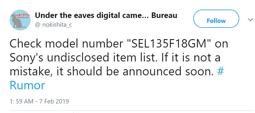The long awaited Sony FE 135mm f/1.8 GM lens (SEL135F18GM) now confirmed by Nokishita Camera. The official announcement could be in mid or late February, just ahead of CP+ Show in Japan.