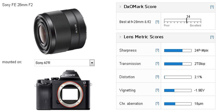 DxOMark has just tested the new Sony FE 28mm f/2 lens (Amazon | B&H | Adorama), according to the DxOMark result, this is a very good and cheap wide-angle prime lens for Sony a7 series mirrorless cameras. See test result below:
