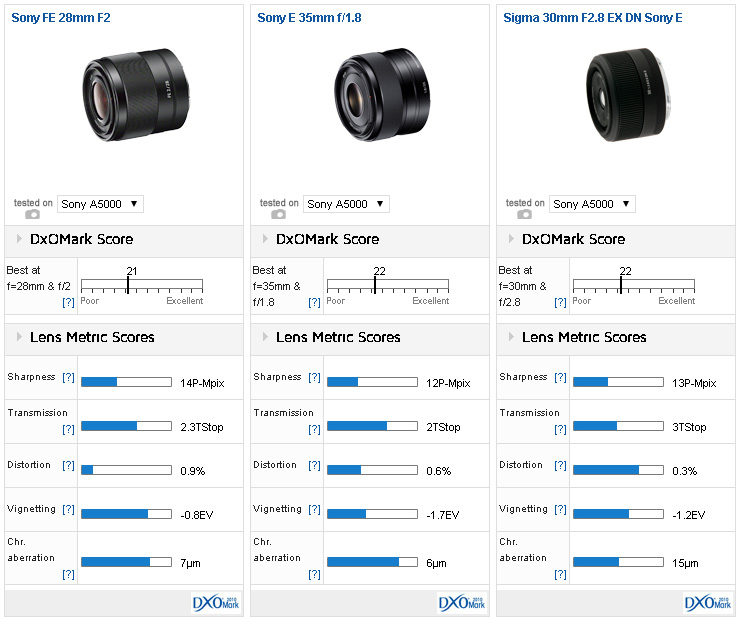 When tested on Sony a5000, this lens is one point below Sony E 35mm f/1.8 and Sigma 30mm f/2.8 EX DN
