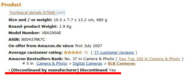 Currently at Amazon.de, the Nikon D7000 is listed as discontinued by manufacturer. Don’t know if this is a mistake. Amazon US and B&H still have D7000 in stock. Continue reading “Nikon D7000 listed as discontinued on Amazon.de”
