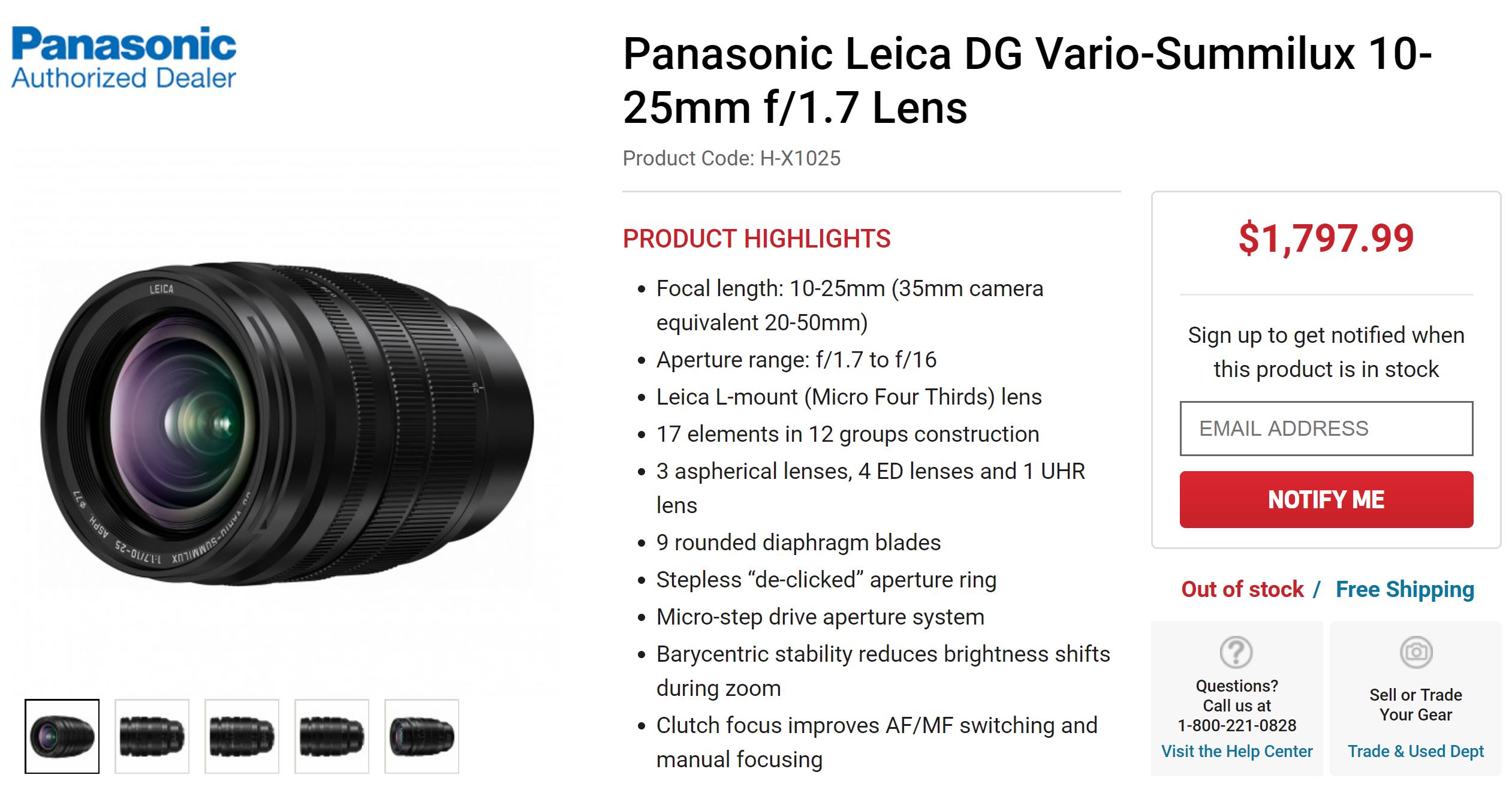 Panasonic USA authorized dealer Focus Camera has already leaked the full specs and US price of Panasonic Leica DG Vario-Summilux 10-25mm f/1.7 Lens today. The US price for this lens is $1,797.99.