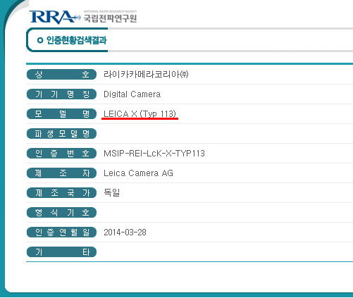 Leica registered a new Leica X type 113 camera at the Korean Radio Research Agency.