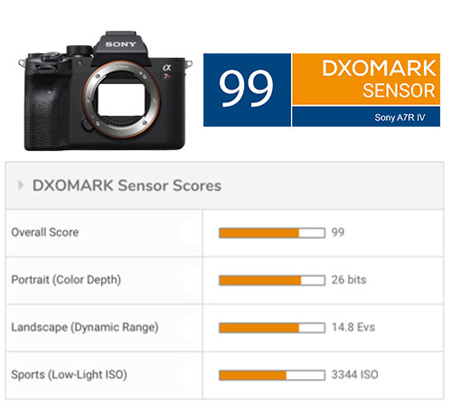 DxOMark has tested Sony a7R IV‘s image sensor, the DxOMark score is 99, just one point behind Panasonic S1R, Nikon D850, Sony a7R III.