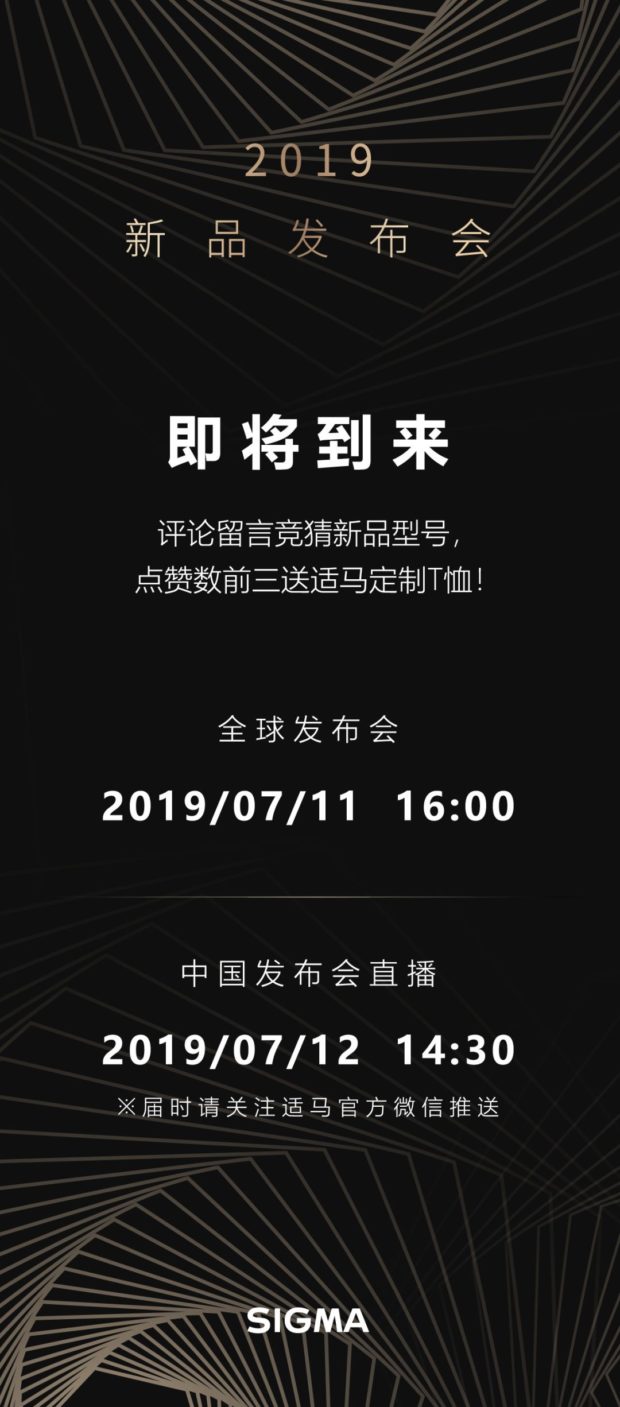 Next week, Sigma is going to have a product announcement on July 11/12, Sigma will announce 4 new full frame mirrorless lenses exclusively designed for Sony E-mount and Panasonic/Leica L-mount full frame mirrorless cameras. Below is the list of new Sigma lenses: