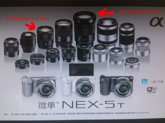 Chinese website Xitek leaked an image of upcoming Sony NEX-5T and new lenses: Zeiss E 16-70mm f/4 ZA OSS, Sony E PZ 18-105mm f/4G OSS.