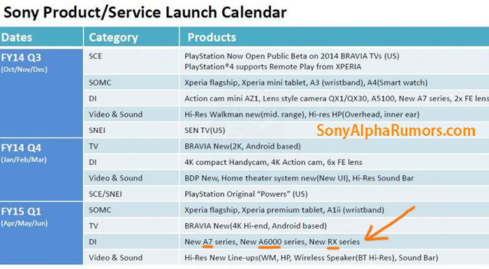 According to SAR, Wikileaks has leaked a new image on upcoming products from Sony. For Digital Cameras, new Sony Alpha a7R II, Sony Alpha a6000 successor (a6100 ?), new RX series (Sony RX100 IV) will be announced in April/May/June.