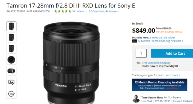 Super Hot Deal!!! The price of Tamron 17-28mm f/2.8 Di III RXD Lens for Sony FE mount has just dropped a lot for the first time! It is now for only $799 at Amazon/ B&H/ Adorama. This is $100 cheaper than regular with Limited 6-Year Warranty!