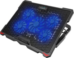 The AICHESON Laptop Cooling Pad is an affordable and highly efficient option for anyone looking to keep your Acer Nitro 5 cool and functioning smoothly. It comes equipped with five fans, which operate quietly to provide optimal cooling for laptops up to 17.3 inches. The pad is also adjustable, making it easy to find the perfect angle for working or gaming. One unique feature of the AICHESON Laptop Cooling Pad is the dial that allows you to adjust the fan speed. This makes it easy to find the perfect balance of cooling power and noise level. Additionally, the pad has an attractive blue LED light that adds a nice touch to any workstation. While the AICHESON Laptop Cooling Pad does a great job of keeping laptops cool, some users have reported feeling a little bit of heat emanating from the laptop. However, this may be due to the fans pushing hot air away from the laptop, and not an issue with the cooling pad itself. Overall, the AICHESON Laptop Cooling Pad is a great choice for anyone looking for a budget-friendly, high-performance laptop cooling pad. It’s easy to use, adjustable, and has a great cooling capacity that keeps laptops cool and functioning smoothly.