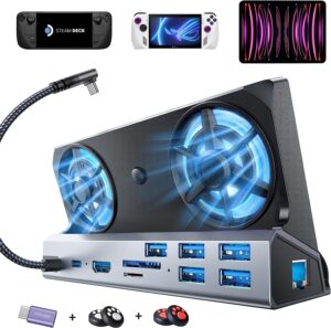 The iVoler Upgraded 4K 60Hz 1000Mbps LAN Docking Station is a versatile and high-performance docking solution, designed specifically to cater to the needs of ASUS ROG Ally users. This docking station boasts a sleek and durable aluminum design, making it a stylish addition to your workspace or gaming setup. One of the most notable features of this docking station is its support for HDMI 2.0 4K@60Hz, allowing for stunning 4K visuals and a smooth 60Hz refresh rate. This ensures a premium viewing and gaming experience, free from image lag or degradation. Additionally, the 1000Mbps Gigabit Ethernet port offers speedy and reliable connectivity, ensuring a blazing-fast and stable internet connection, whether you’re gaming, streaming, or working. The iVoler docking station also includes three USB 3.0 ports, providing fast data transfer speeds and enabling users to connect multiple peripherals with ease. The inclusion of a 100W PD power port ensures that your devices will stay charged while you’re using them, adding to the convenience of this versatile dock. In conclusion, the iVoler Upgraded 4K 60Hz 1000Mbps LAN Docking Station offers an excellent combination of performance, design, and functionality. Users of Steam Deck, ROG Ally, and other devices can greatly benefit from its advanced features, making it a worthwhile investment for gamers and professionals alike.