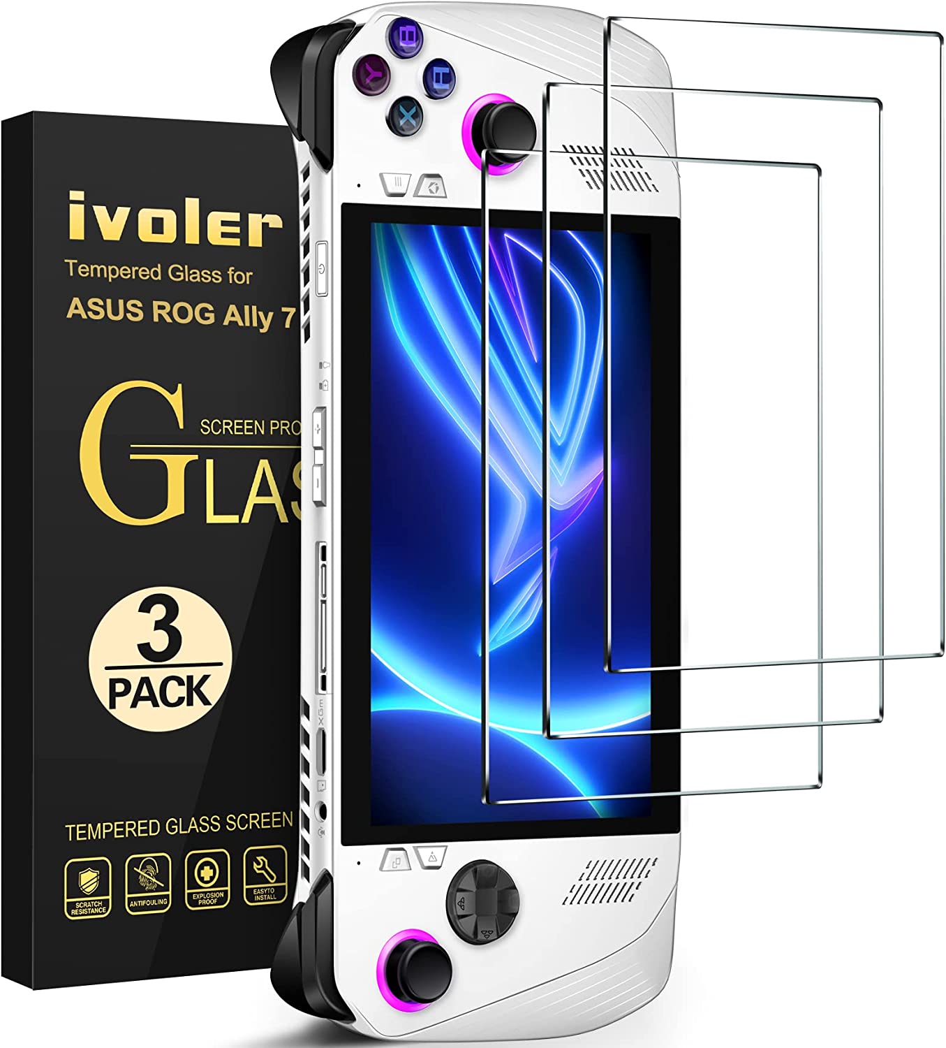 The iVoler Transparent HD Clear Anti-Scratch Screen Protector is a valuable accessory for your ASUS ROG Ally gaming handheld device. This pack of three screen protectors offers high-quality protection for the 7-inch screen of the ASUS ROG Ally 2023 model. The tempered glass screen protectors are designed to maintain the, touch accuracy, and responsiveness of your device, ensuring that the gaming experience is not compromised. One of the key features of the iVoler screen protector is its transparency and HD clarity. You can expect no loss in picture quality or touch sensitivity when using this screen protector. It maintains the vibrant colors and sharp resolutions of your ASUS ROG Ally’s screen, providing you with an immersive gaming experience. When it comes to protection, the iVoler screen protector excels in providing anti-scratch and shatterproof protection. Made from high-quality tempered glass, these screen protectors are designed to safeguard your device’s screen from everyday wear and tear, as well as accidental drops. The screen protector’s durable surface protects against scratches, while its 9H hardness rating ensures that the glass will remain intact even when subject to significant force.