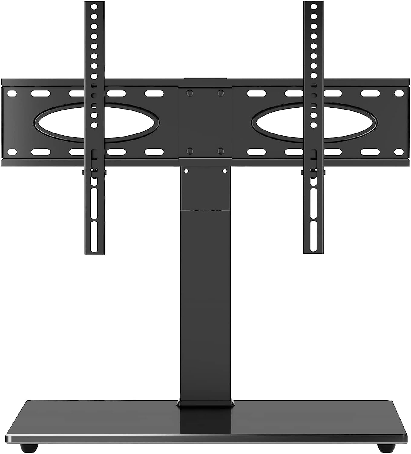 The TAVR Universal Swivel TV Stand effortlessly adjusts to provide the perfect TV viewing angle. Compatible with most 37-75 inch TVs up to 110 pounds, this sturdy base has a smooth swiveling motion that rotates 30 degrees left or right. The height can also be adjusted between 26.5 and 32.4 inches using the included hooks and metal column. Installation takes only 10 minutes with the clear instructions. At its budget-friendly price point, this TAVR stand is a steal. The heavy-duty steel pole and thick tempered glass base keep your expensive TV stable and secure, while integrated cable management clips organize messy wires. Safety locks on the TV bracket give added protection against tipping. Whether you need to reduce glare, connect devices in the back, or maximize your space, the TAVR stand conveniently swivels and adjusts for your optimum comfort. No need to drill holes in your wall or move furniture around. For hassle-free universal compatibility and flexible yet sturdy TV support, the TAVR swivel stand is an excellent choice.