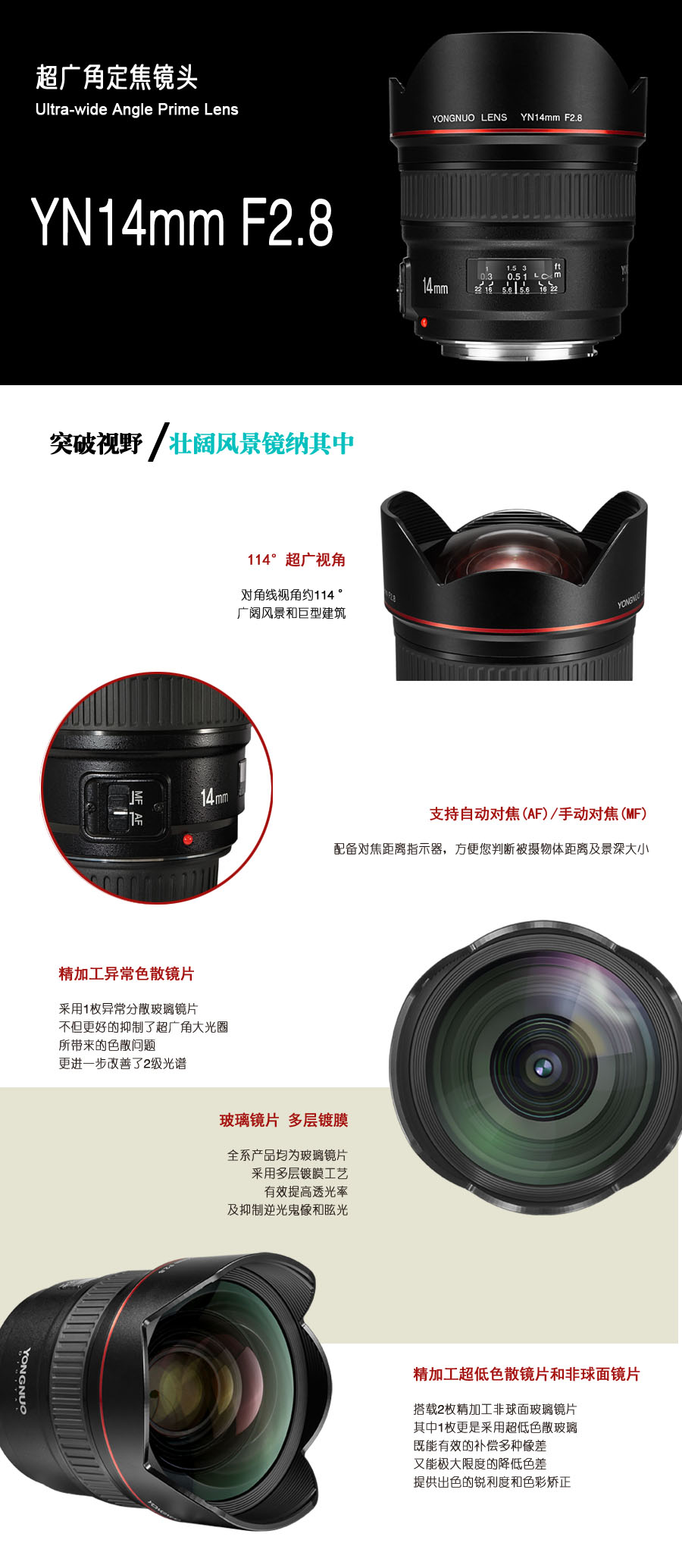 Yongnuo has just officially announced the new YN 14mm f/2.8 Ultra-wide Angle Prime Lens today. The US price and release date is not available yet, you can check pre-order options at B&H Photo Video.